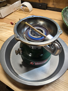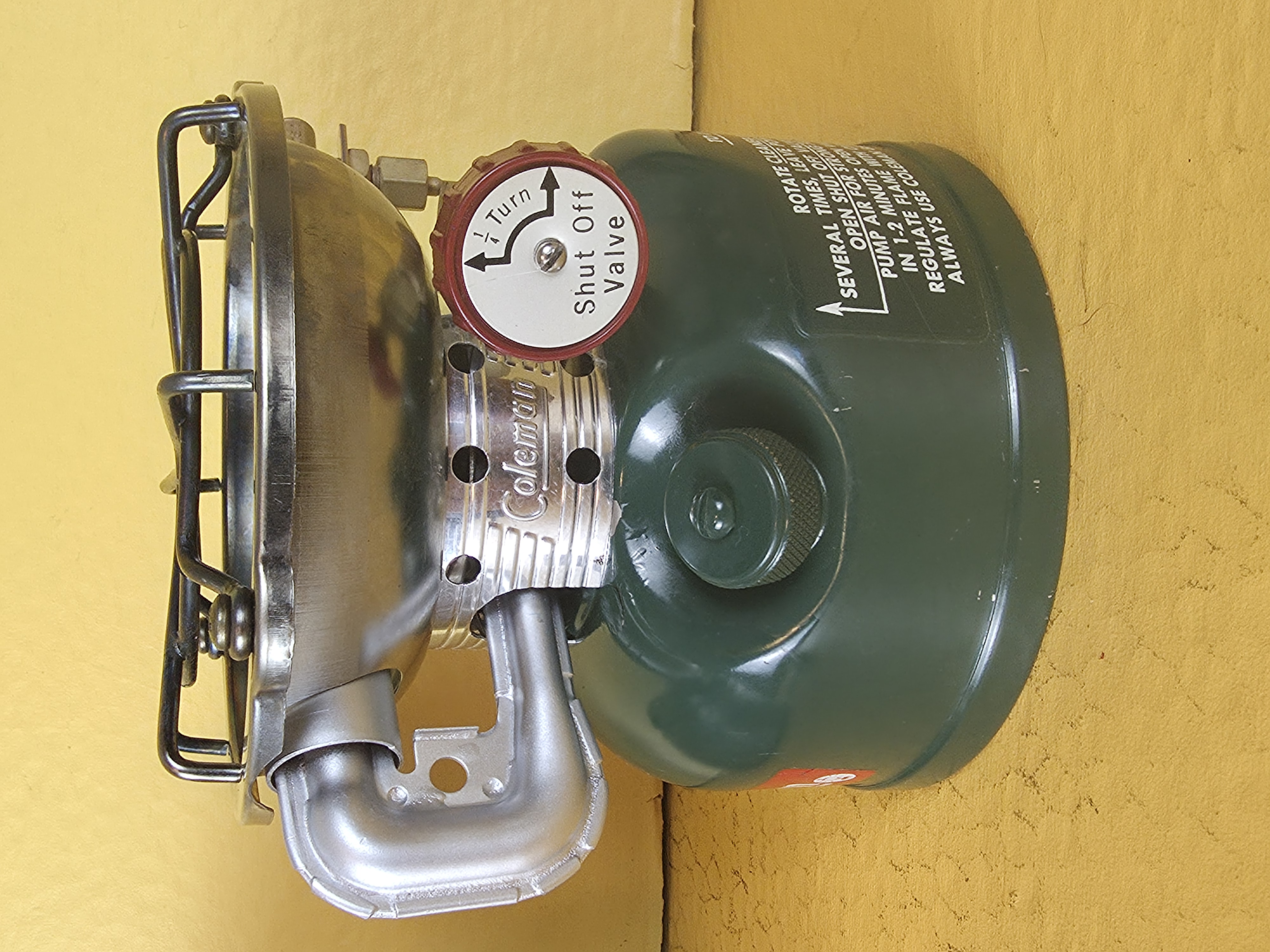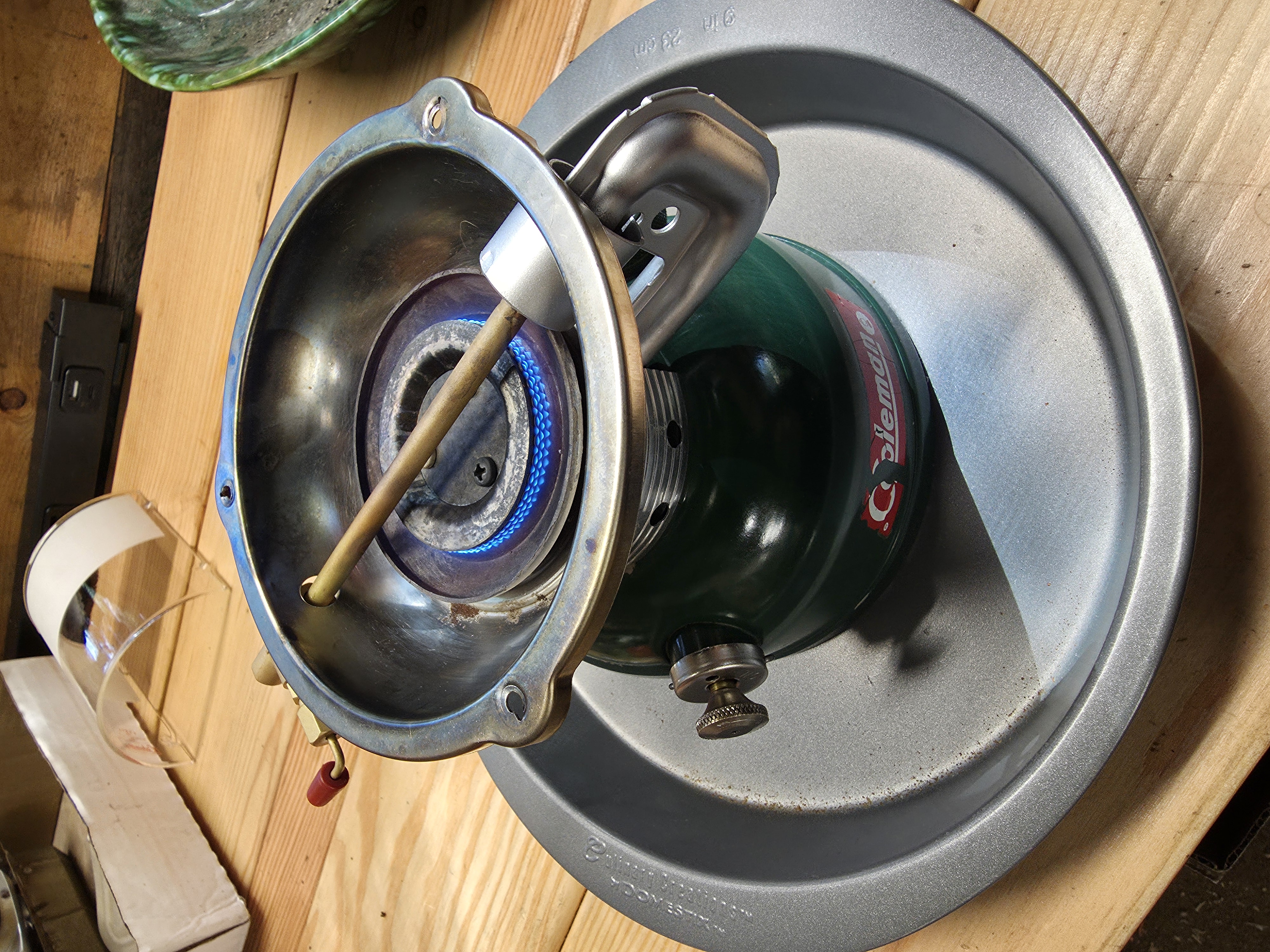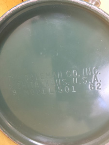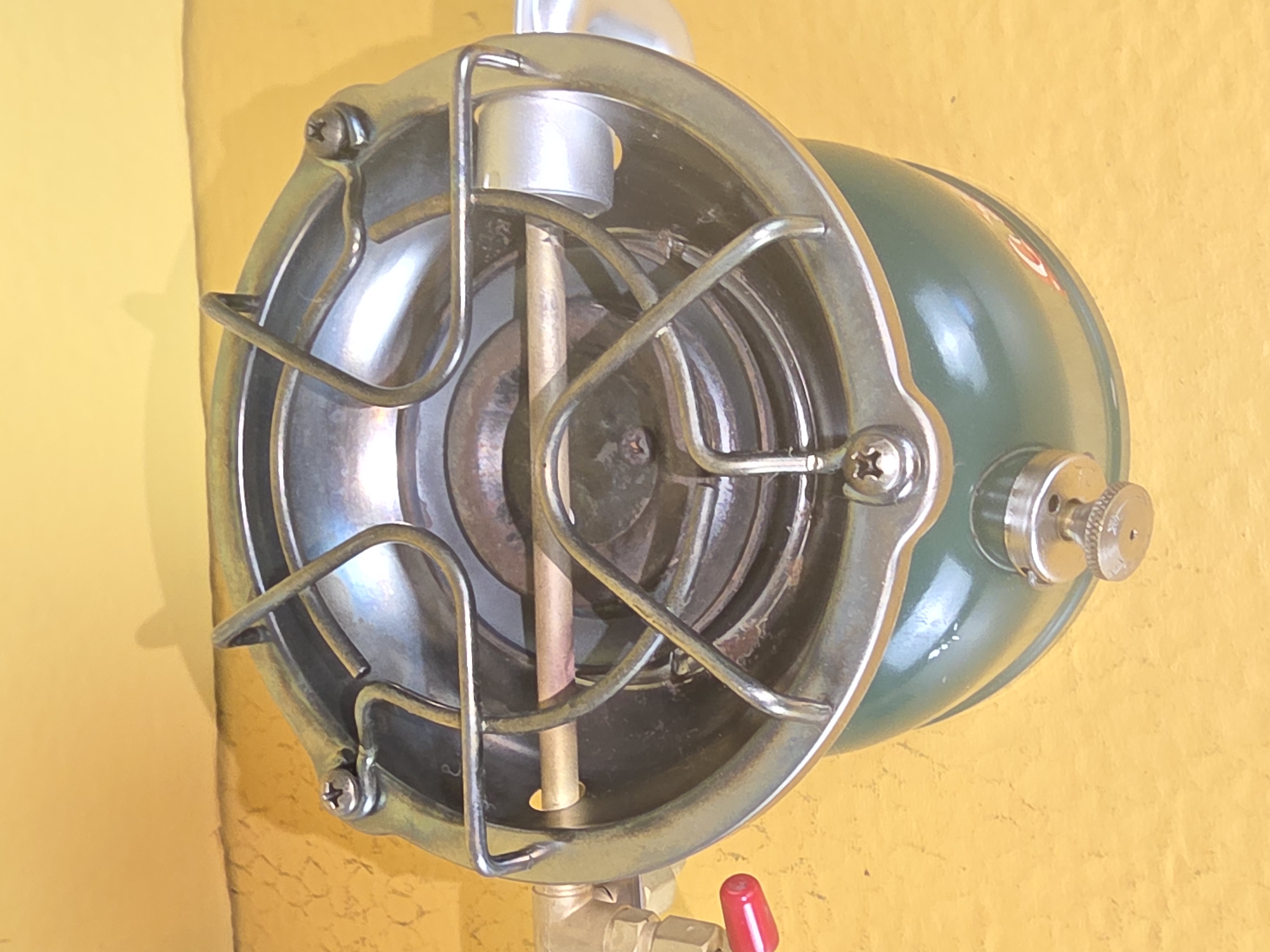This stove is in remarkable condition for a 1962 model. There was a bit of rust in the outer burner bowl but it came mostly clean. The Bunsen was stripped and repainted. Burner bowl and cap was blued. The original generator and check valve were cleaned and reused with the CV getting a gasket, the valve stem packing and filler cap gasket were replaced. Burns great with no issues.