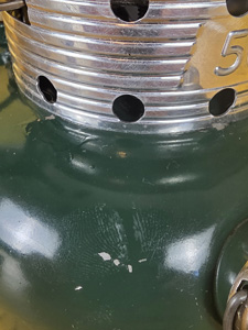 Defects to note: the decal is wonky, there is light chipping under the collar and very light spots around the fount.