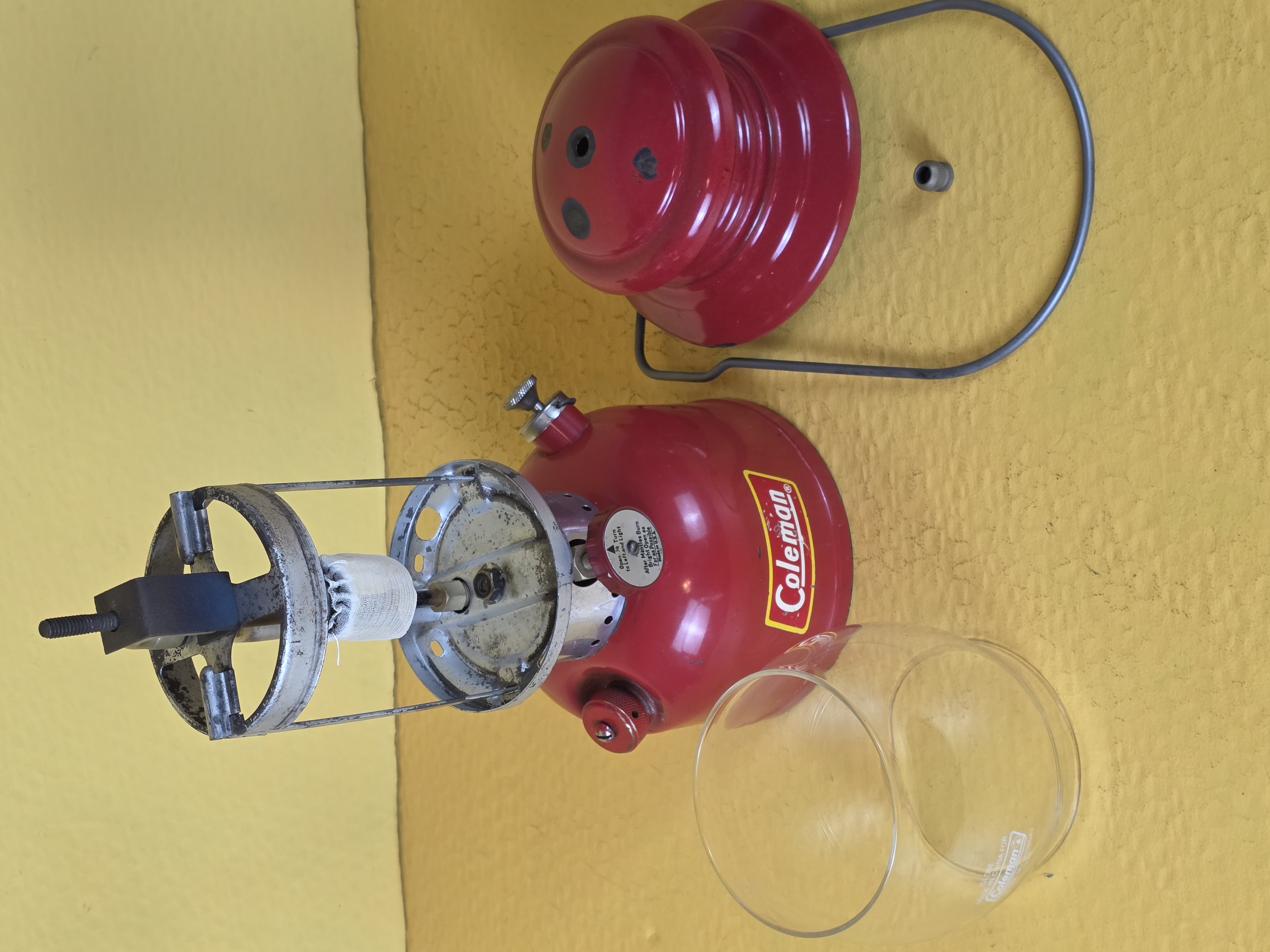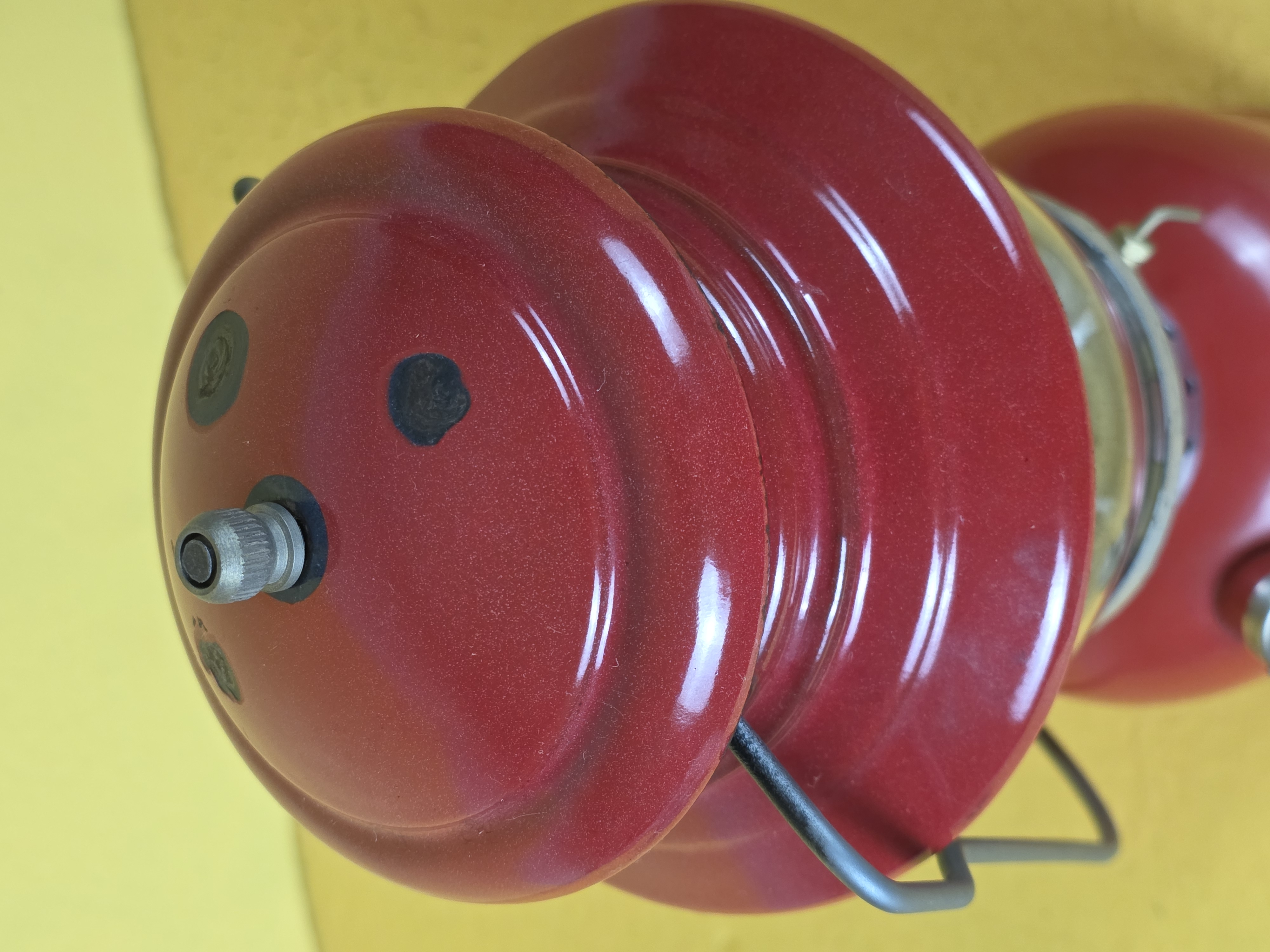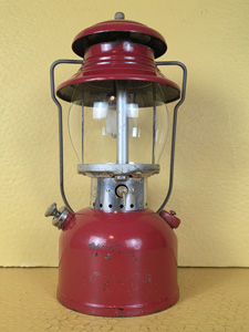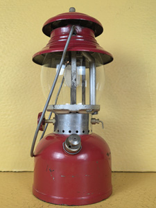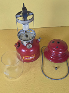 So, this is what a heavily used lantern that was cleaned but not repainted looks like. This is one of the by-Coleman painted frame lanterns, and I just didn't want to repaint it. It isn't rusty, what you see in the photos is the metal under the original silver paint.