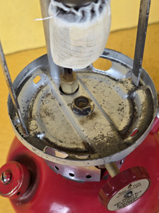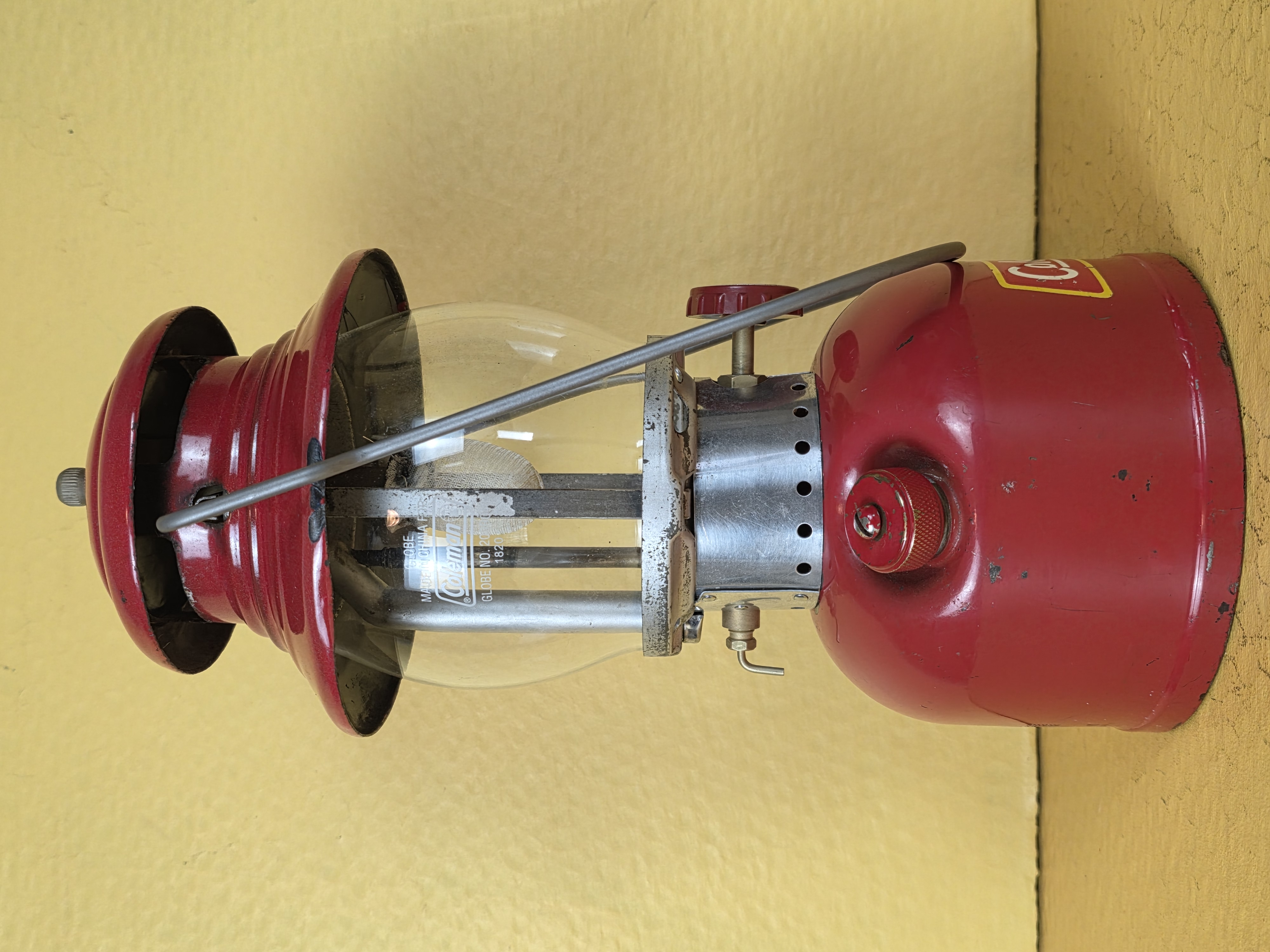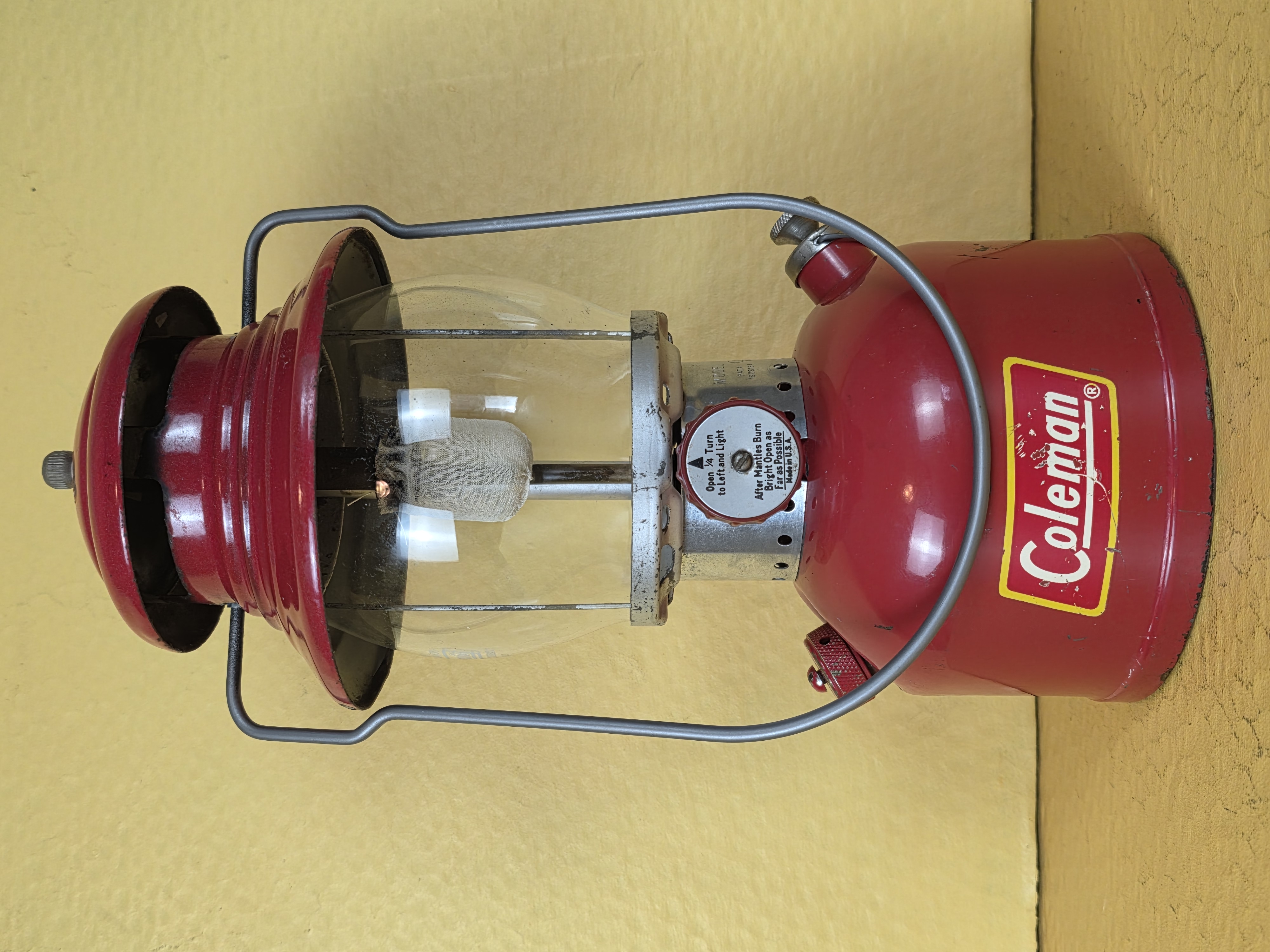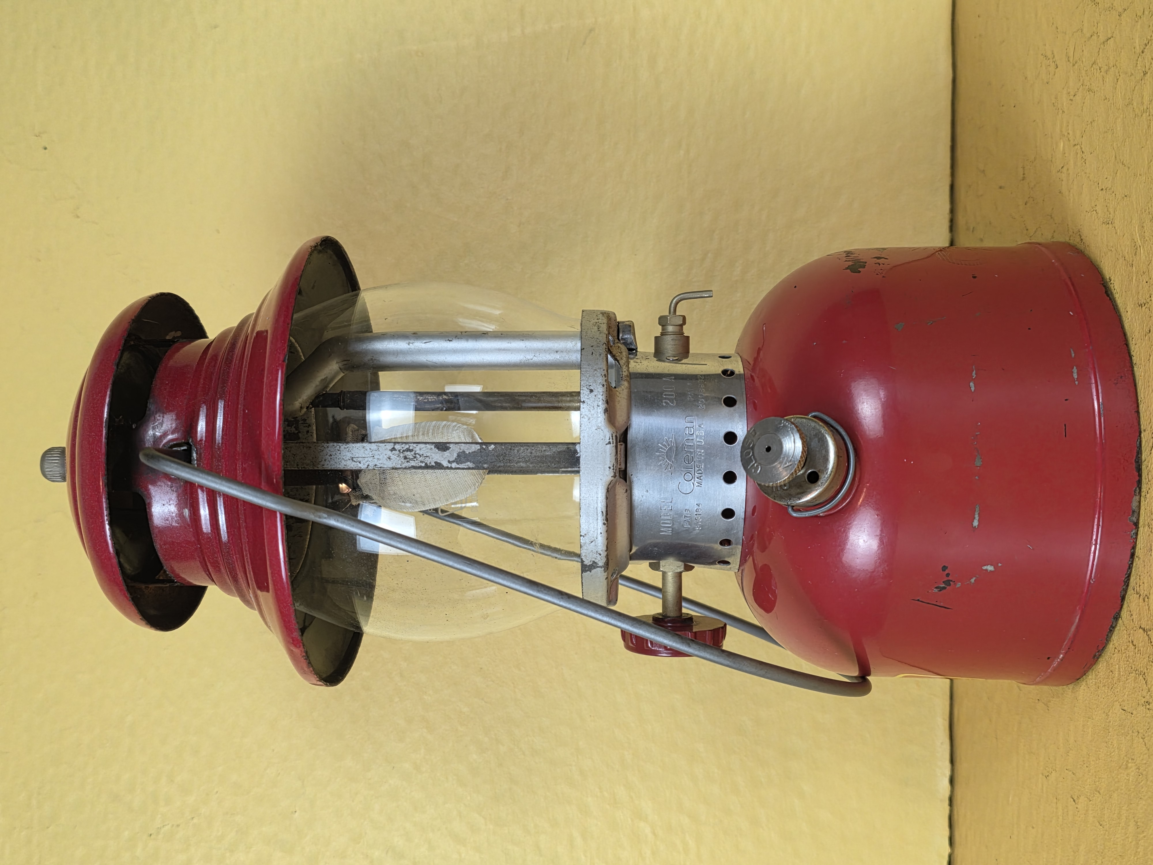 So, this is what a heavily used lantern that was cleaned but not repainted looks like. This is one of the by-Coleman painted frame lanterns, and I just didn't want to repaint it. It isn't rusty, what you see in the photos is the metal under the original silver paint.