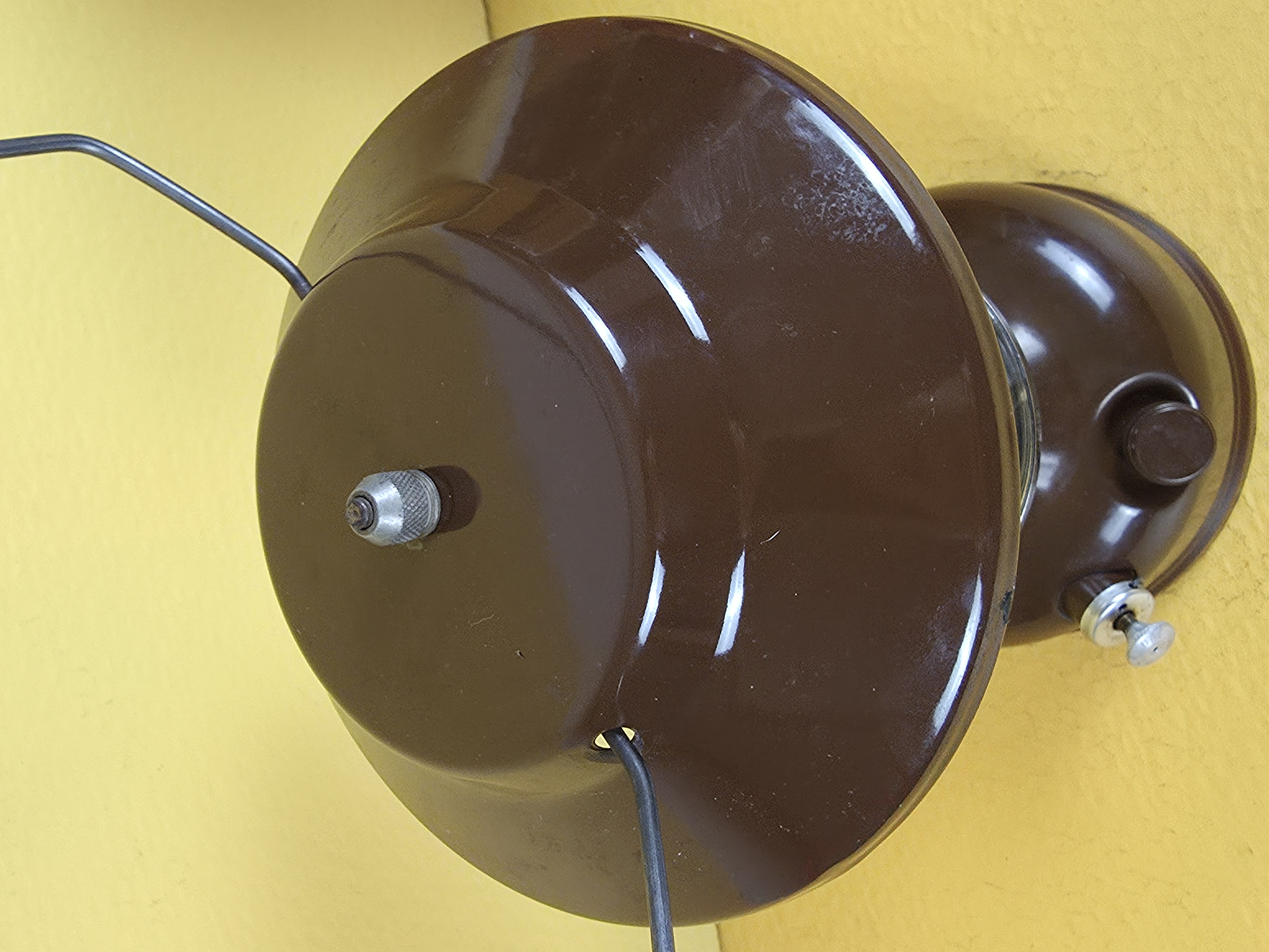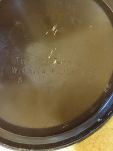 Fount has a little paint loss as shown (some under frame rest, majority on the bottom ring. Overall a good lookin A-turd! It was not used very much--clean enough that the burner was blown out and dusted off only. Ventilator has a couple of small enamel chips on the outer edge and one at one bail hole. It also formerly had "something" on the ventilator. I got 95% of it off and if you're willing to scratch at it with your fingernail, you might get the rest off. I don't know what it is, but you can't really see it but you can feel it if you run your hand across it. Not a big deal, just want you know. Globe is nice "used on".