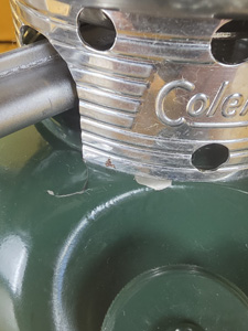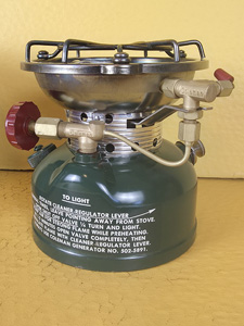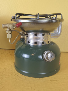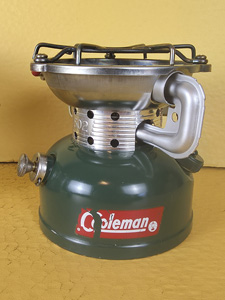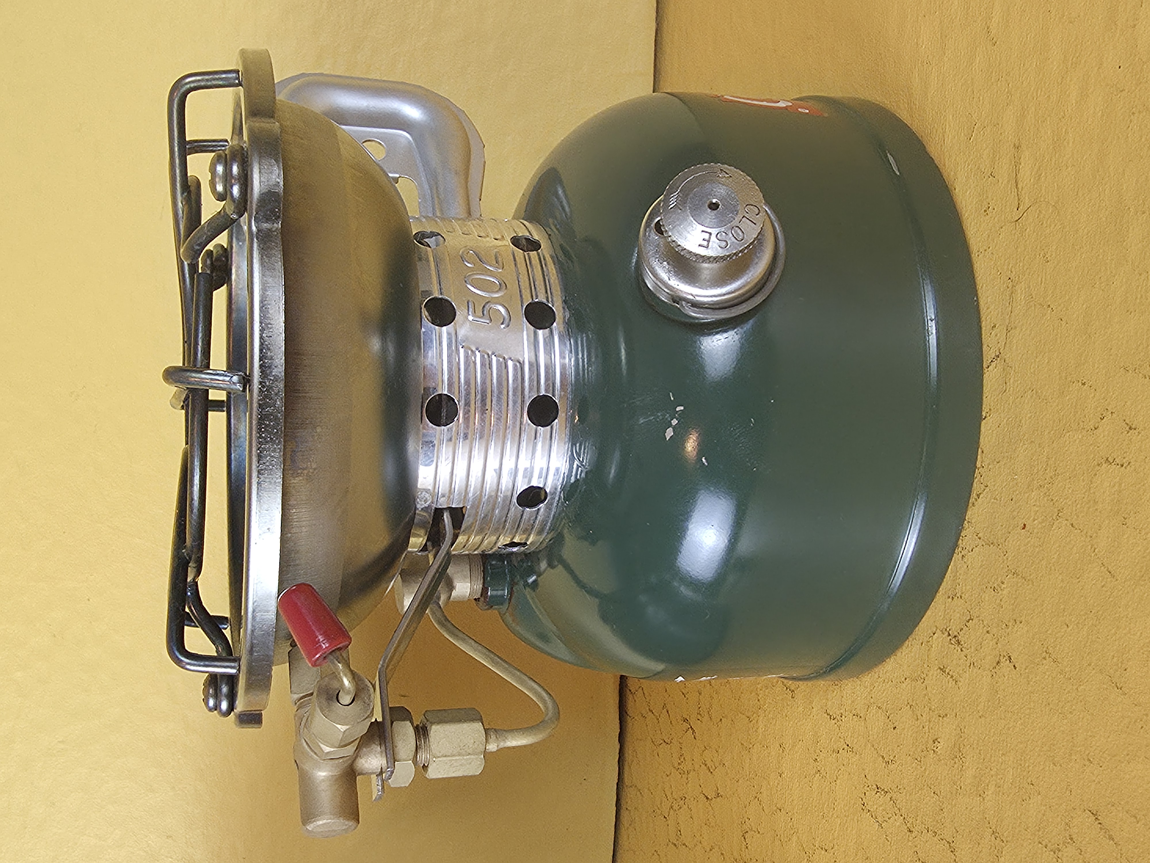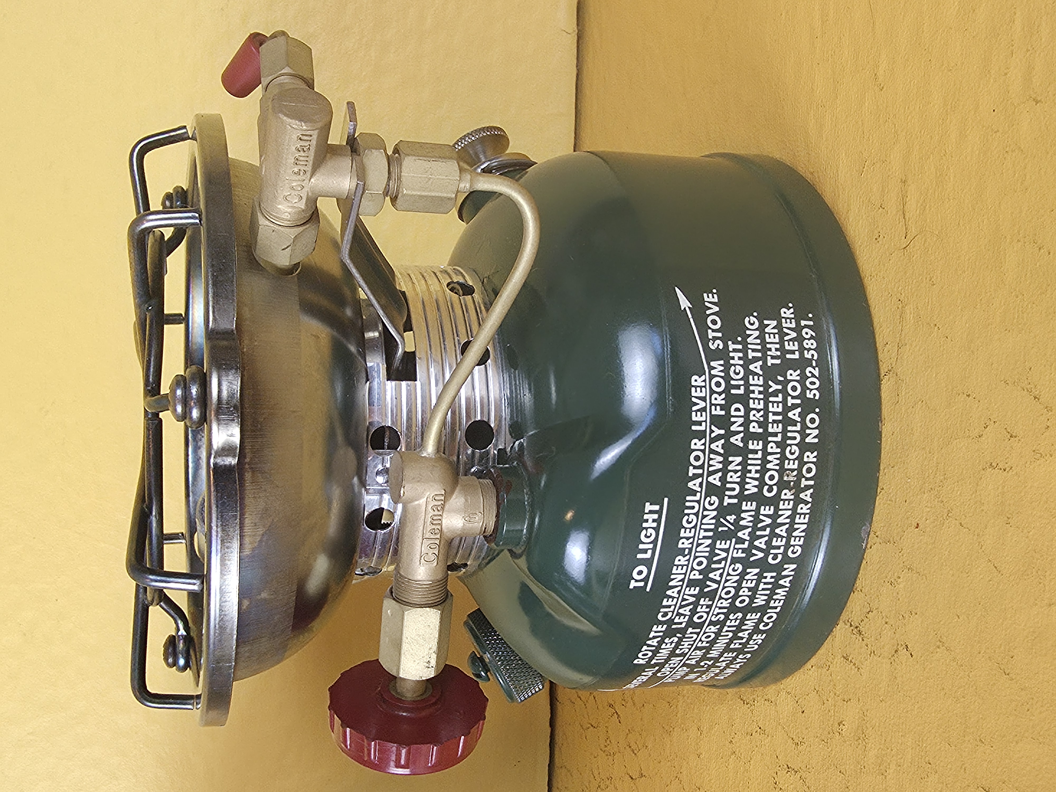 This stove is in remarkable condition for a 1962 model. There was a bit of rust in the outer burner bowl but it came mostly clean. The Bunsen was stripped and repainted. Burner bowl and cap was blued. The original generator and check valve were cleaned and reused with the CV getting a gasket, the valve stem packing and filler cap gasket were replaced. Burns great with no issues.