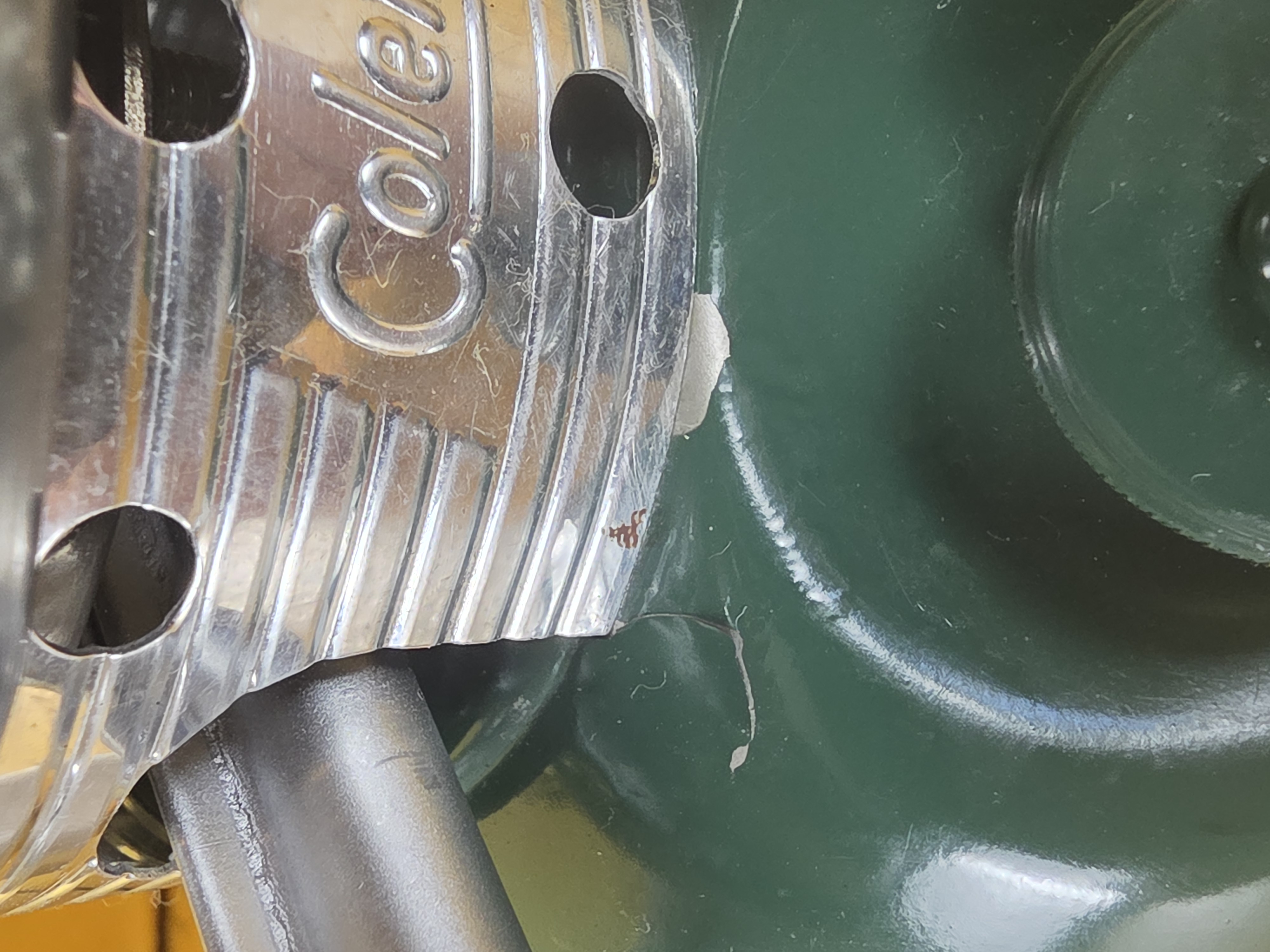 Defects to note: the decal is wonky, there is light chipping under the collar and very light spots around the fount.